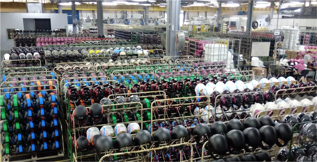 Nossa fábrica está localizada na cidade de Mandirituba, no Paraná. Com mais de 15.000m2 de área fabril, tem uma produção de mais de 8 mil capacetes por dia.