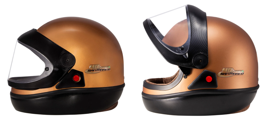 Em 2023, o San Marino completou 40 anos entregando qualidade e segurança a todos os motociclistas. Para comemorar, o capacete mais querido do Brasil recebeu um upgrade na sua forração, que agora é termo formada e antibactericida, e uma nova viseira de policarbonato.